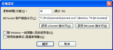 - 如果您想種子下載程式在每次開機時就開始替您自動下載種子,請核取「隨 Windows 一起啟動」